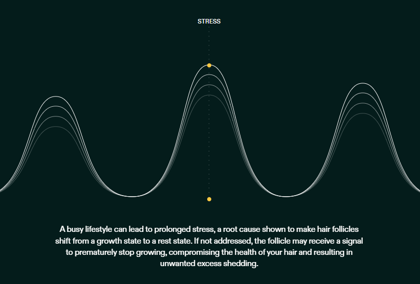 Stress causes hair follicles to shift from a growth state to a rest state. If notaddressed, this can signal follicles to prematurely stop growing, resulting inunwanted hair shedding.
